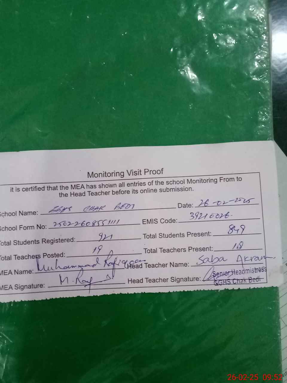 | EMIS Code: 39210026 | Name of School: GGHS CHAK BEDI | |||