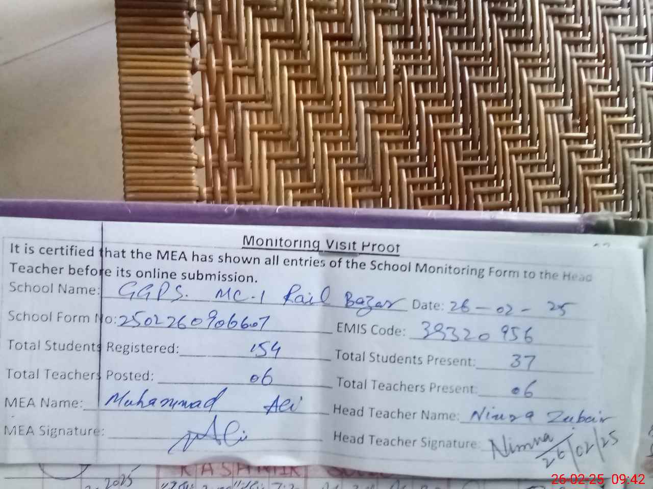 | EMIS Code: 39320956 | Name of School: GGPS MC NO. 1 RAIL BAZAR | |||