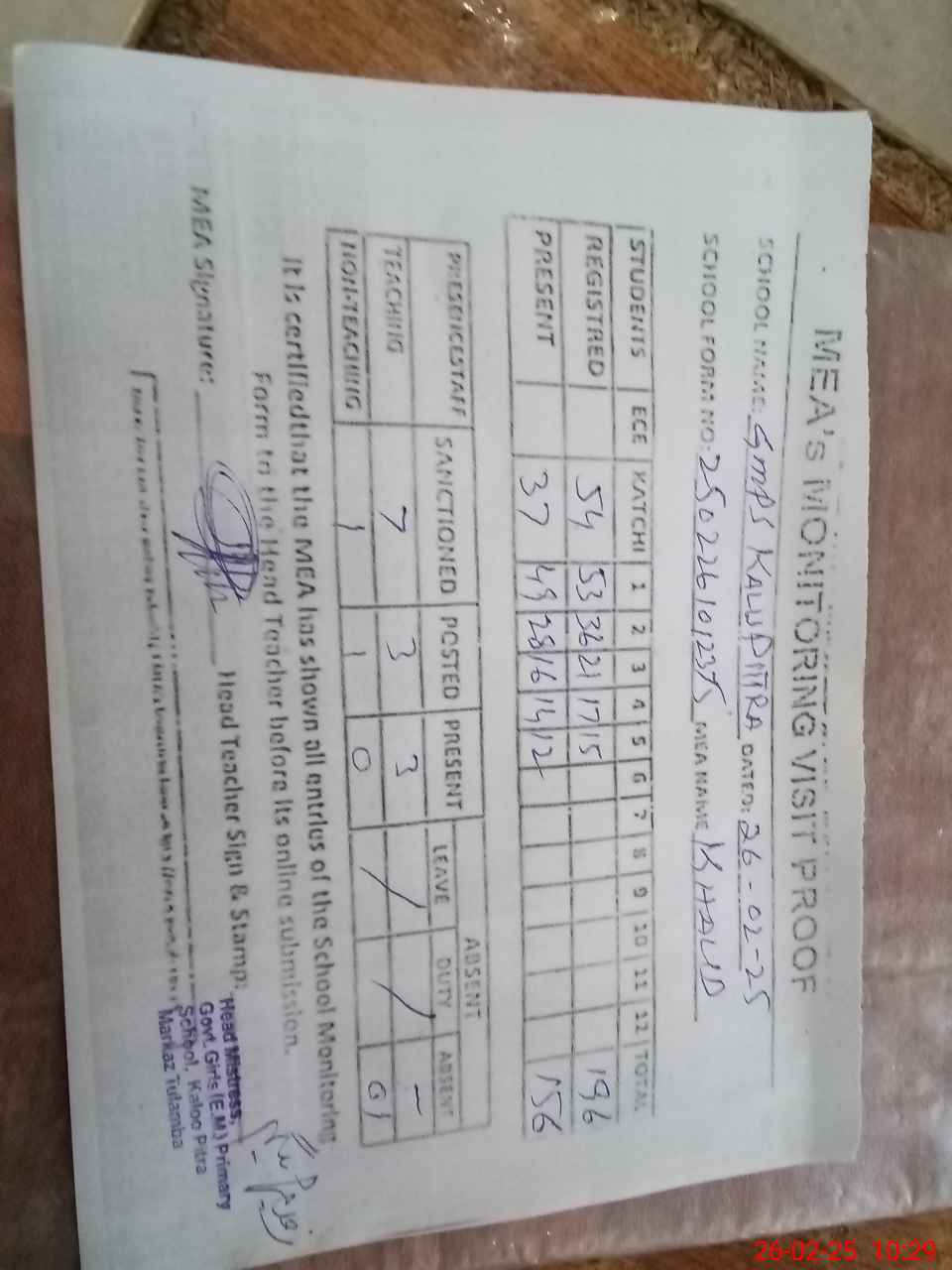 | Monitoring Date: 26-02-2025 | Start Time: 26-02-2025 09:29 AM | End Time: 26-02-2025 10:36 AM | Name of MEA: Kh**** Me**** | |