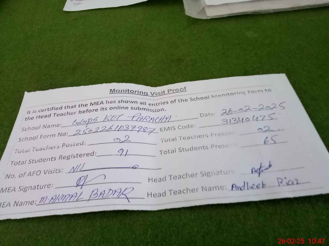 | EMIS Code: 31340475 | Name of School: GGPS KOT PRAACHA | |||