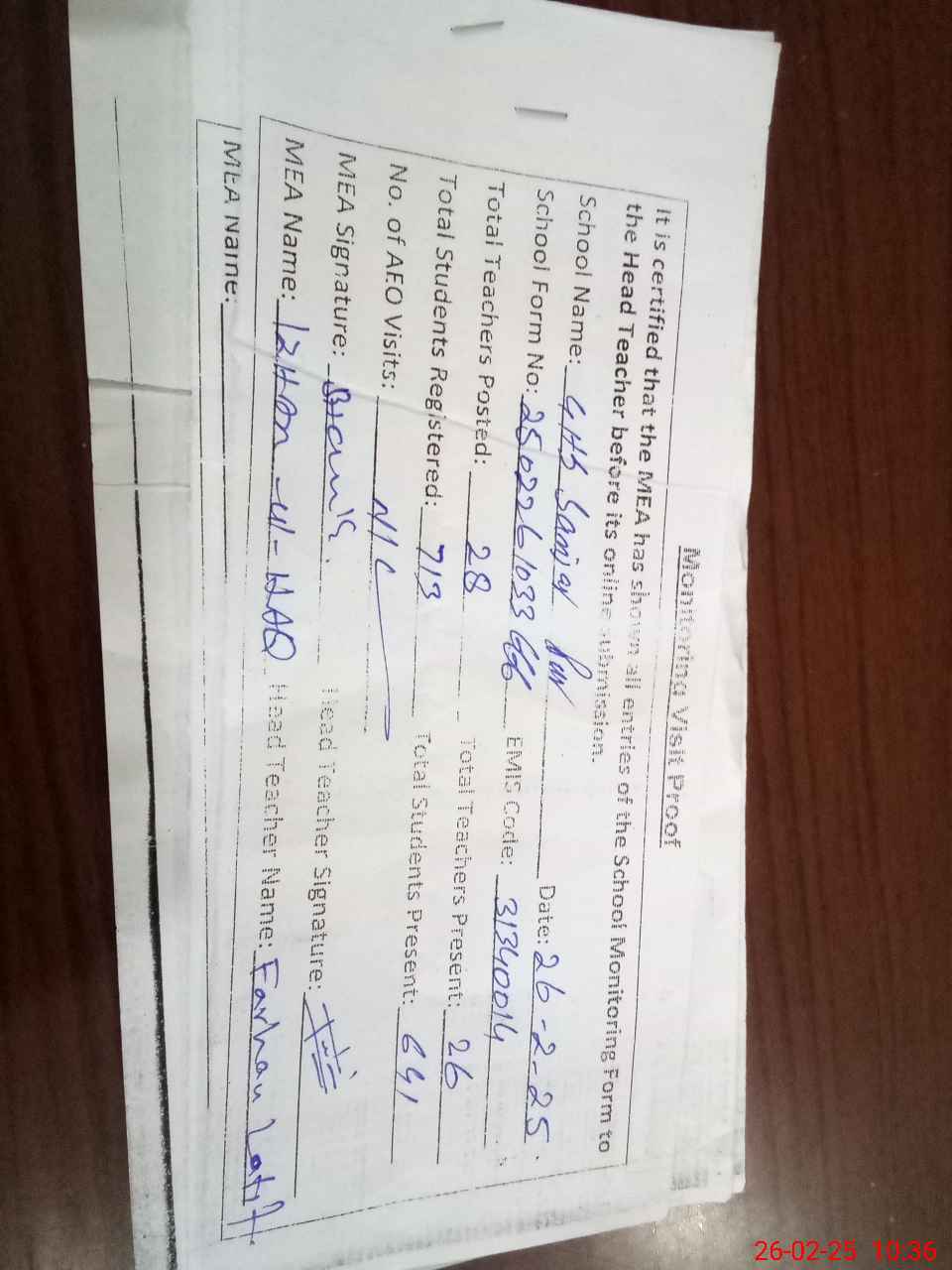 | Certified that this School was Inspected by the Undersigned MEA/DMO Today and the Information Stated Above is as Per Record. | |||||
