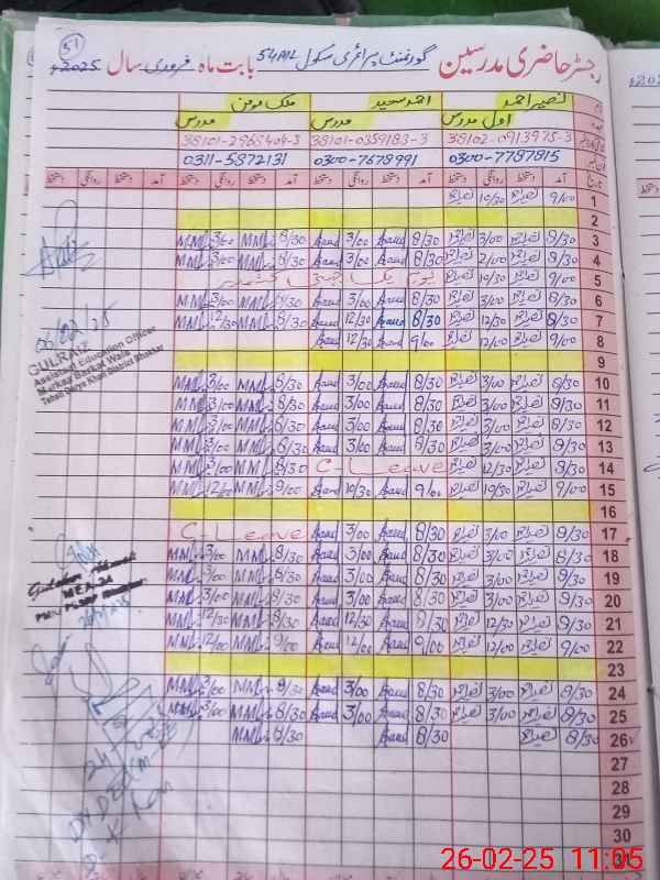| Name: Na**** Ah**** Designation: (School Headmaster's/Headmistress's) PST Phone/Cell Number: 03**** |