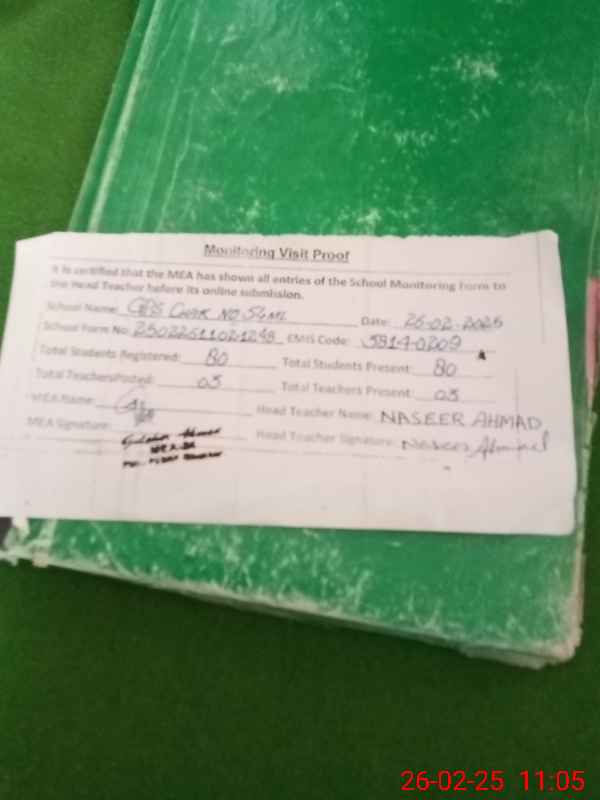 | EMIS Code: 38140209 | Name of School: GPS CHAK NO 54 ML | |||
