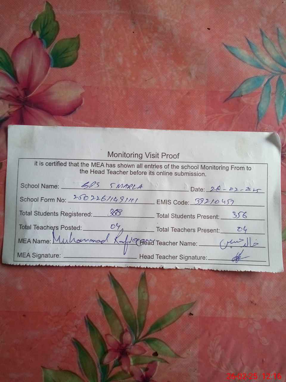 | EMIS Code: 39210457 | Name of School: GPS 5-MARLA SCHEME ADDA CHAK BEDI | |||