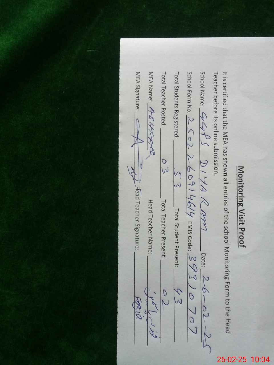 | EMIS Code: 39310707 | Name of School: GGPS DIARAM KALAN | |||