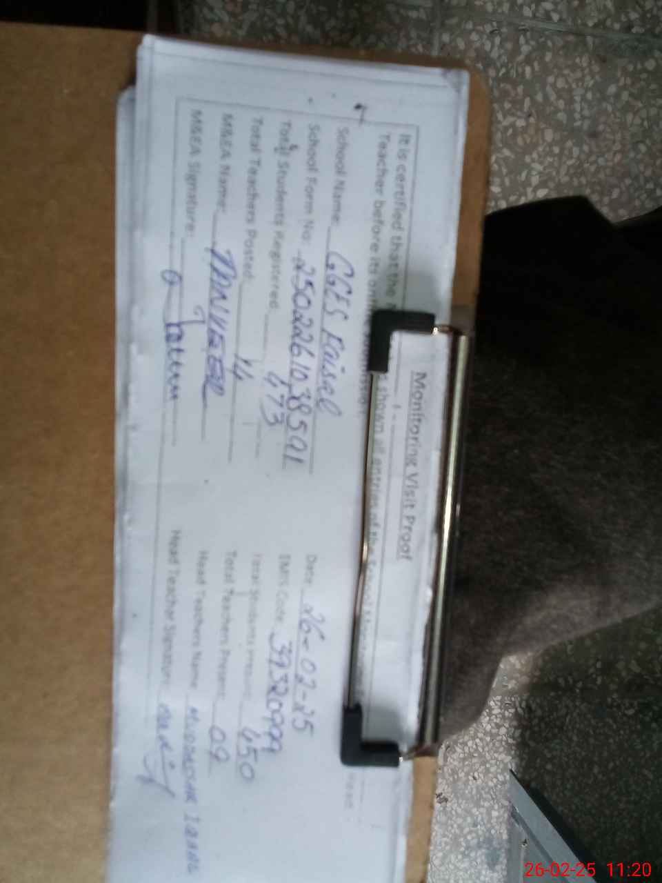 | Certified that this School was Inspected by the Undersigned MEA/DMO Today and the Information Stated Above is as Per Record. | |||||