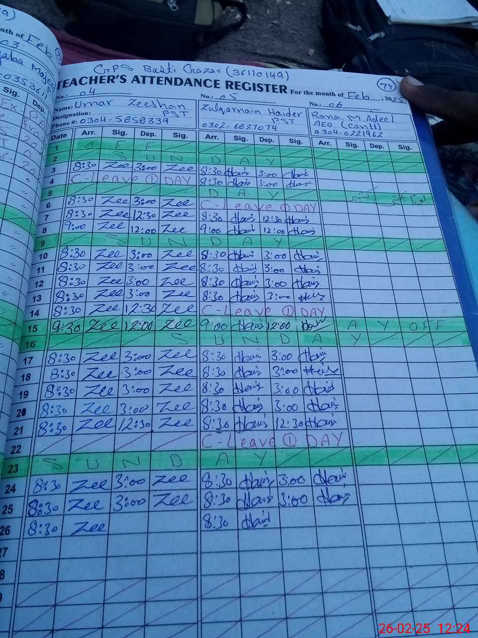 | Name: Um**** Ze**** Designation: (School Headmaster's/Headmistress's) HEADMASTER Phone/Cell Number: 03**** |