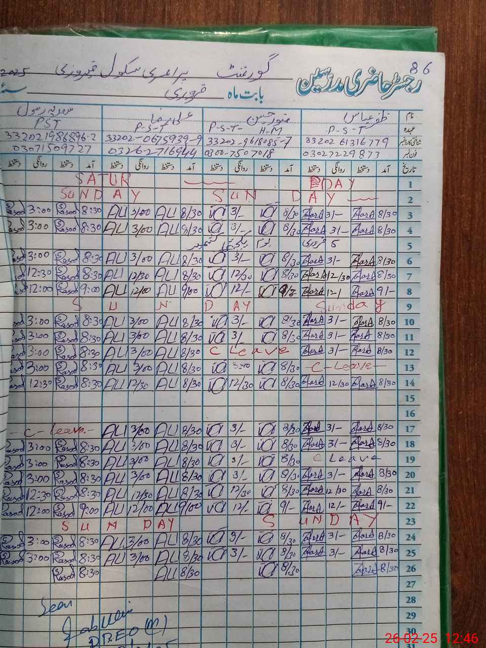 | Name: Mu**** Hu**** Designation: (School Headmaster's/Headmistress's) PST Phone/Cell Number: 03**** |