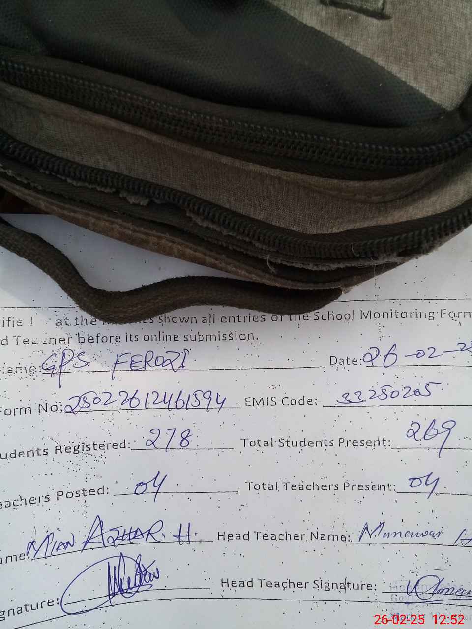 | EMIS Code: 33250205 | Name of School: GPS FEROZI | |||