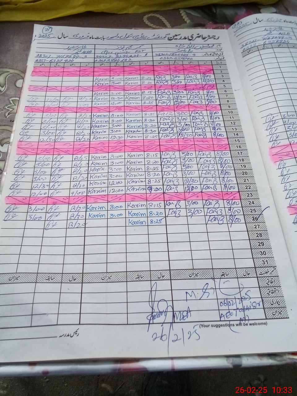 | Name: Mu**** Fa**** Ul**** Sh**** Designation: (School Headmaster's/Headmistress's) HEADMASTER Phone/Cell Number: 03**** |