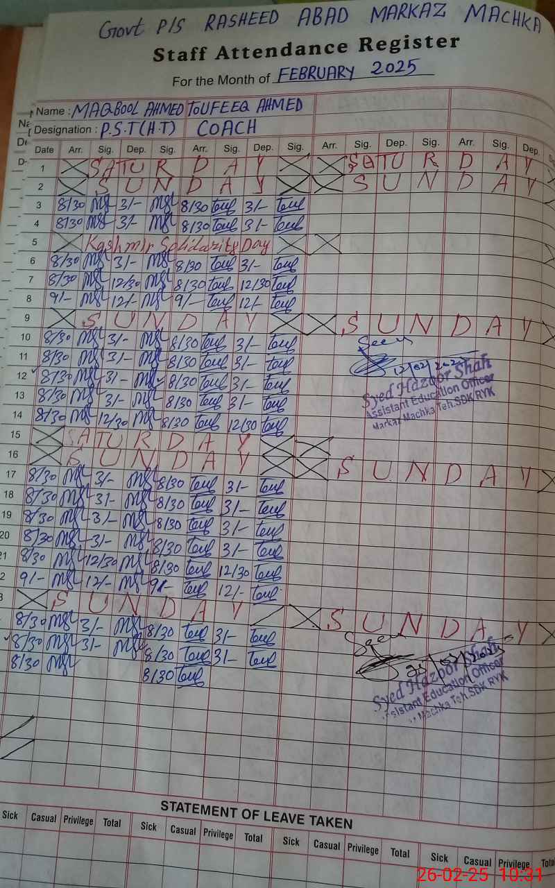 | Name: MA**** AH**** Designation: (School Headmaster's/Headmistress's) PST/PTC/JV Phone/Cell Number: 03**** |