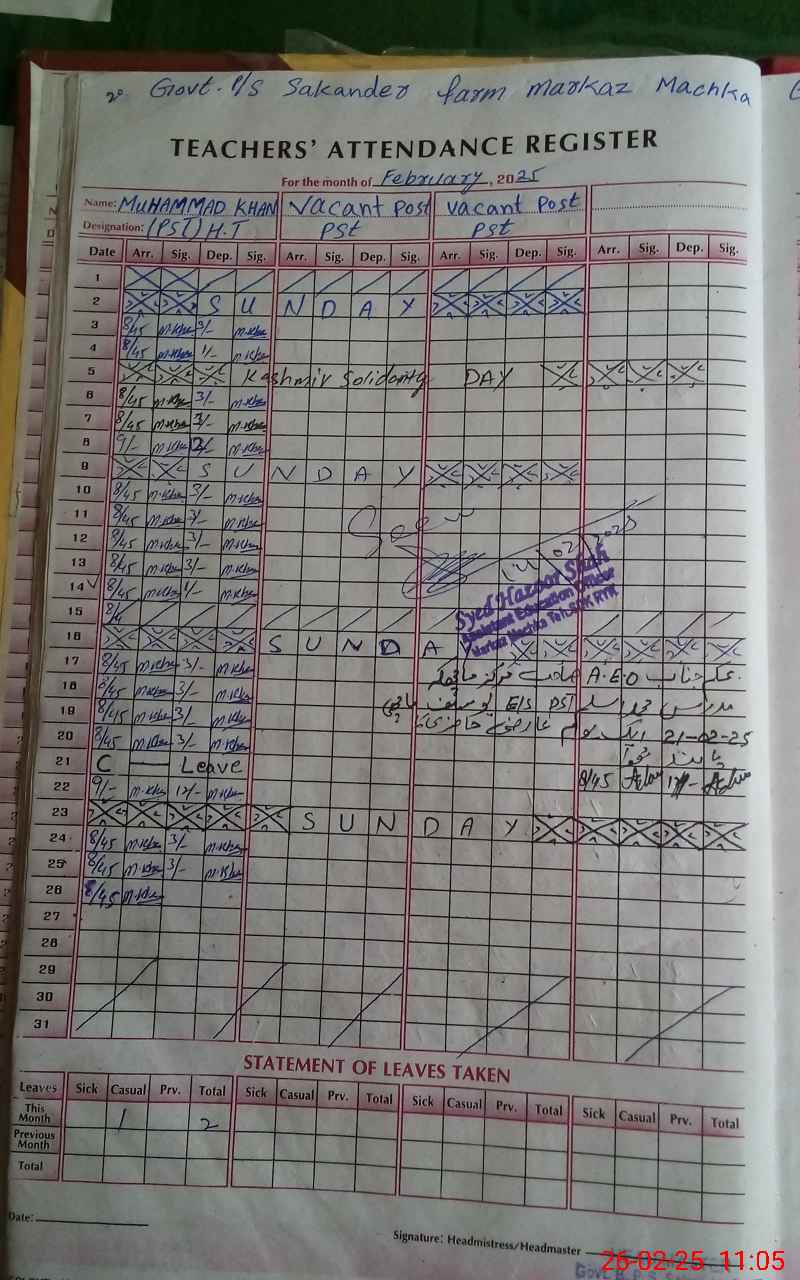 | Name: SH**** Designation: (School Headmaster's/Headmistress's) PST/PTC/JV Phone/Cell Number: 03**** |