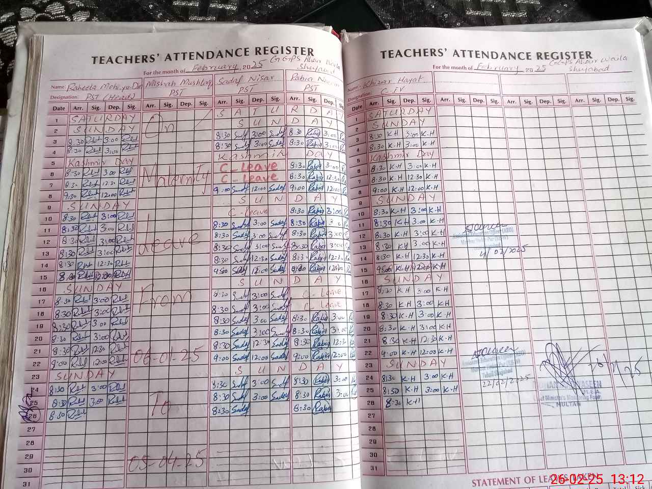 | 33**** | Mi**** Mu**** | PST | Regular | 0 | 0 | 0 | 0 | 0 | 0 | 0 | 0 | 0 | Maternity |