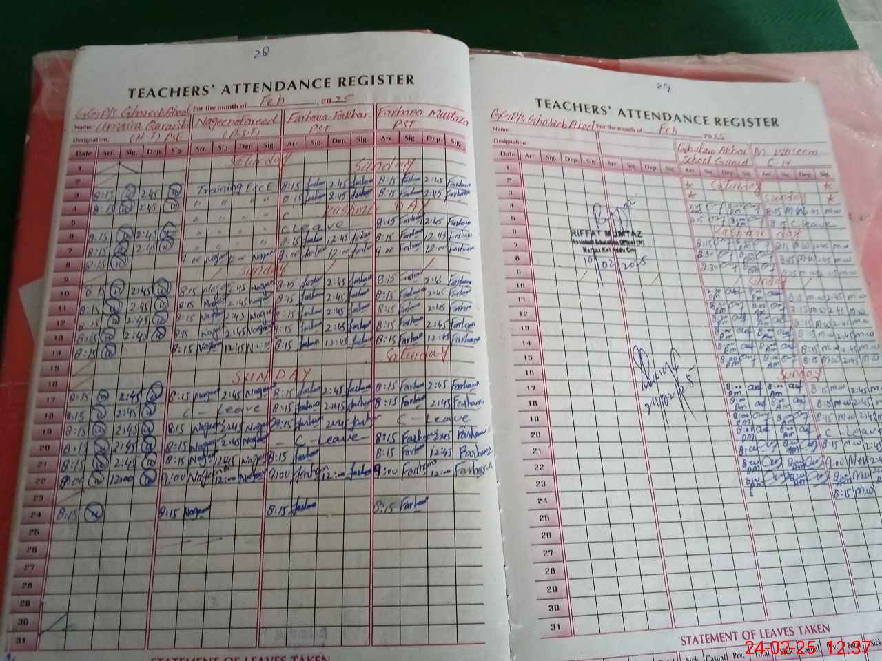 | CNIC | Full Name | Designation | R/C | Absence During Last Calender Month |