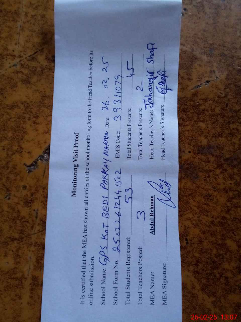 | EMIS Code: 39311079 | Name of School: GPS KOT BEDI (PAKKAY NARAIN) | |||
