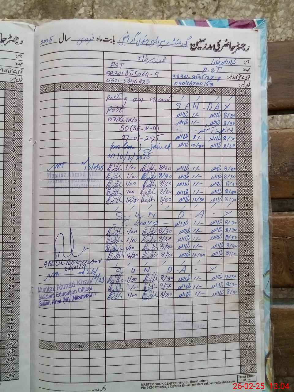 | Name: Aw**** Kh**** Designation: (School Headmaster's/Headmistress's) PST Phone/Cell Number: 03**** |