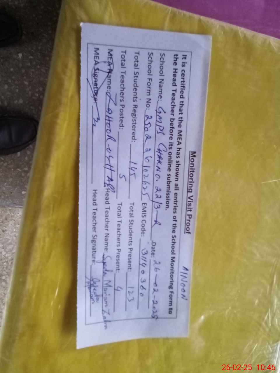 | EMIS Code: 31140360 | Name of School: GMPS CHAK NO. 22/3-R | |||