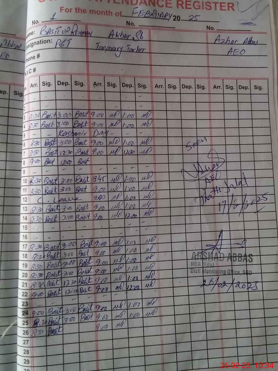 | Name: BA**** URRE**** Designation: (School Headmaster's/Headmistress's) PST Phone/Cell Number: 03**** |