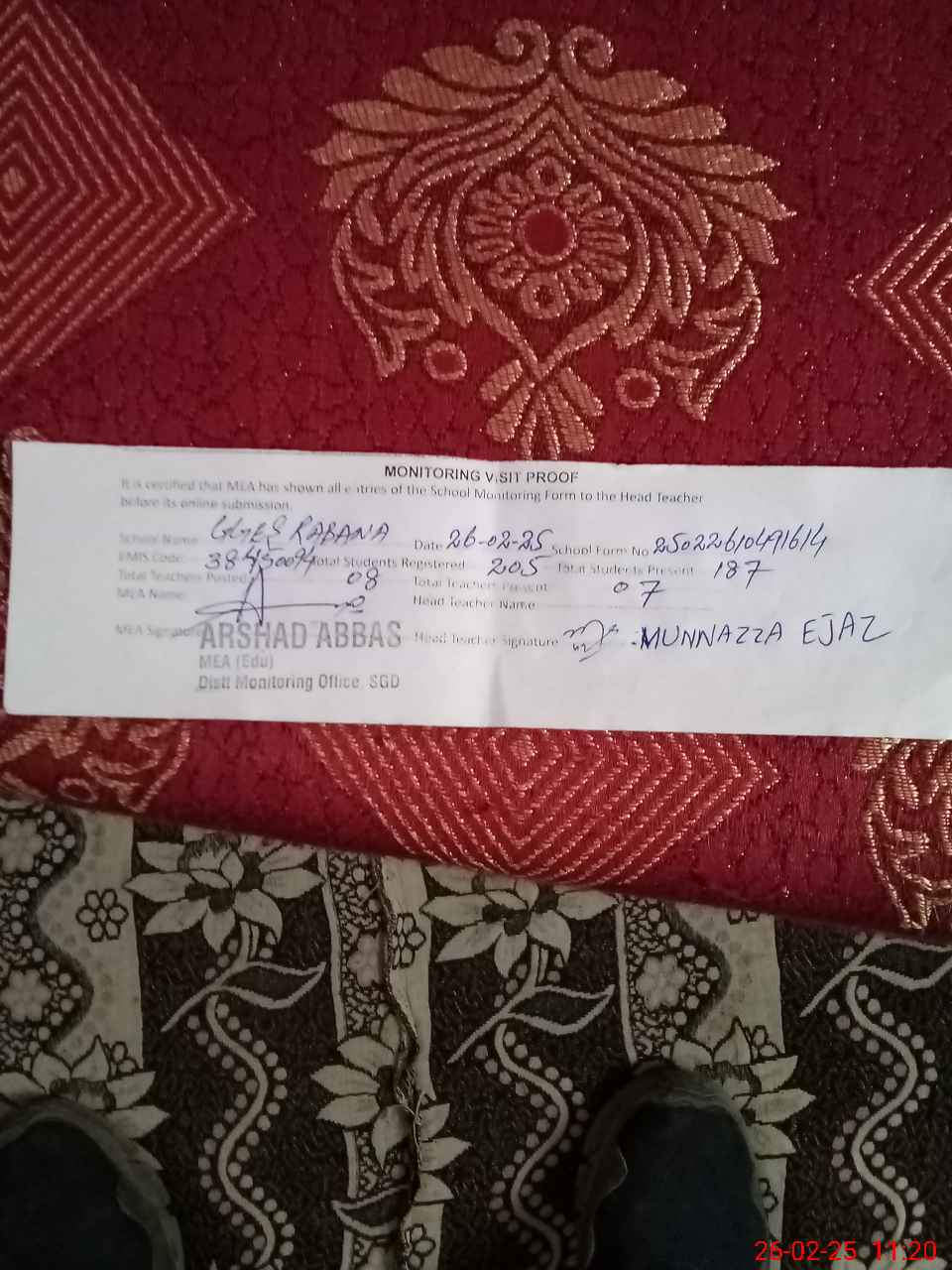 | District: SARGODHA | Tehsil: SAHIWAL | Markaz: THATTI JALAL - FEMALE | Level: Middle | |