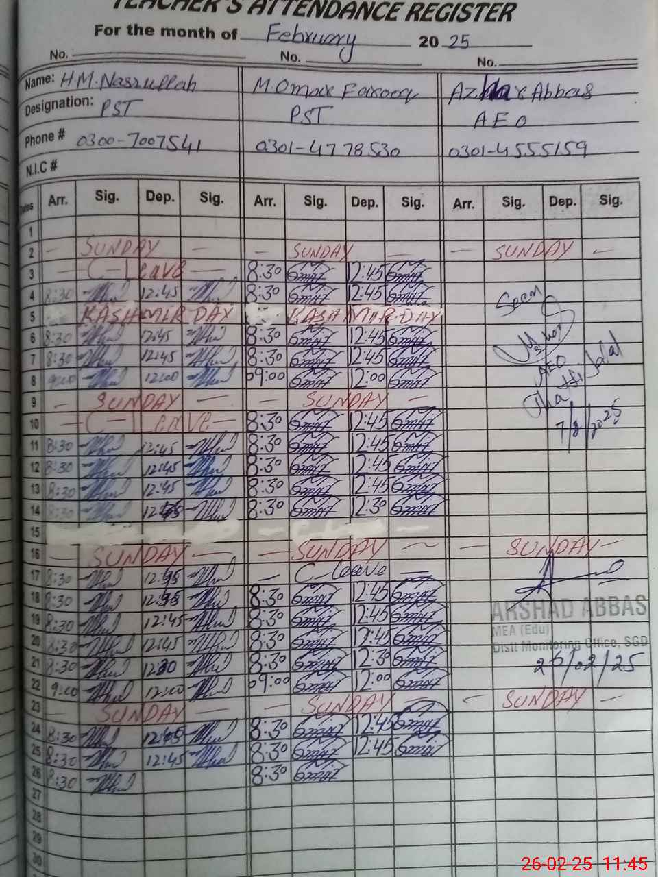 | Name: HA**** MU**** NA**** Designation: (School Headmaster's/Headmistress's) PST Phone/Cell Number: 03**** |
