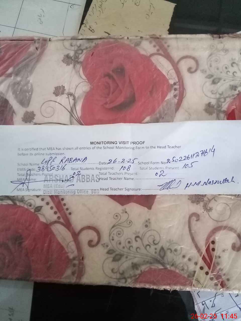 | Certified that this School was Inspected by the Undersigned MEA/DMO Today and the Information Stated Above is as Per Record. | |||||