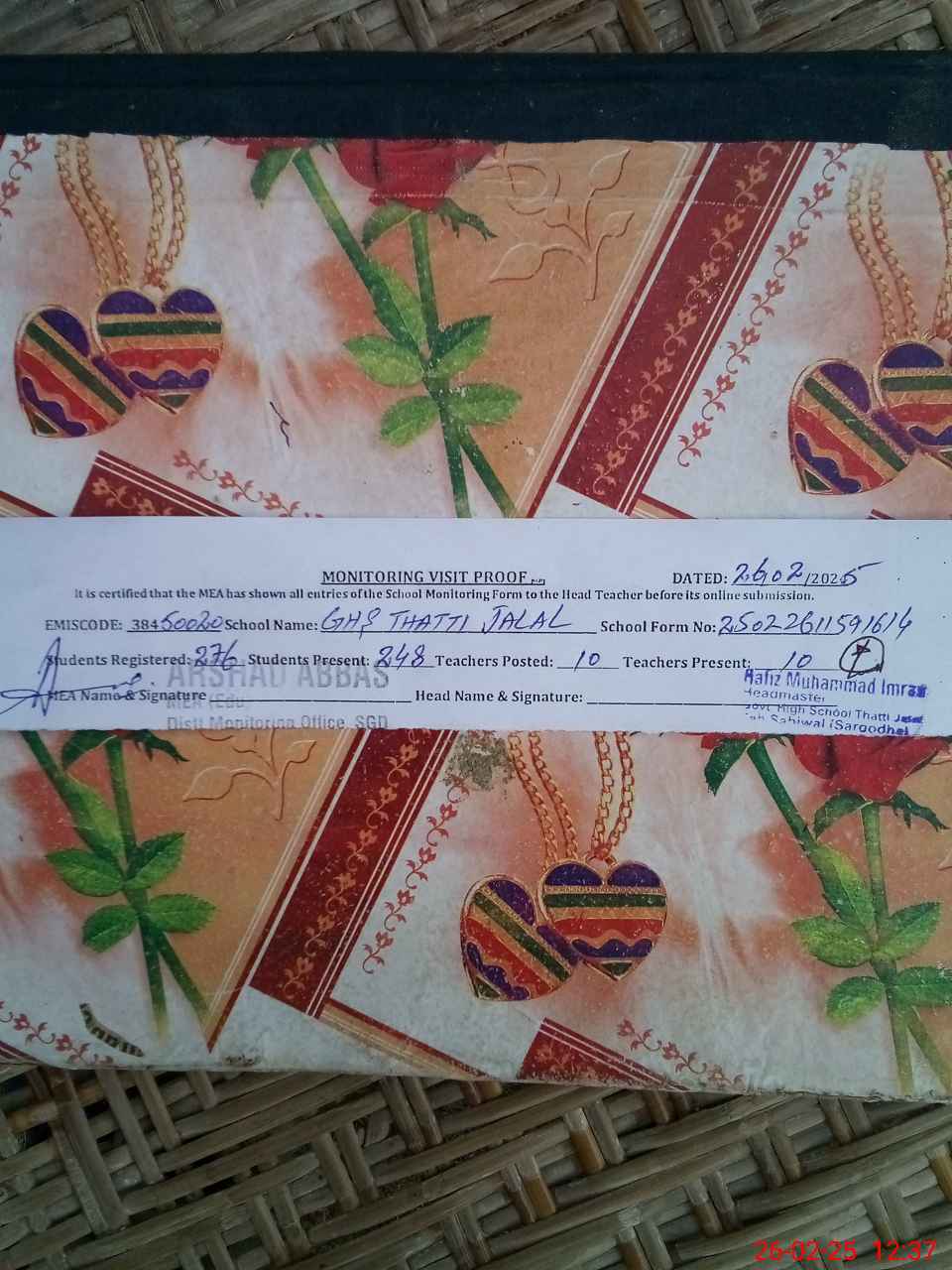 | EMIS Code: 38450020 | Name of School: GHS THATHI JALAL | |||