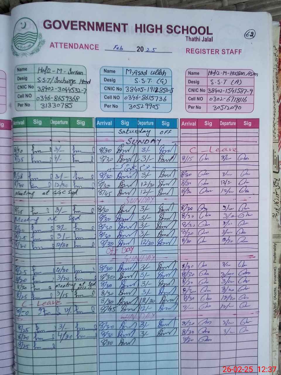 | Name: HA**** MU**** IM**** Designation: (School Headmaster's/Headmistress's) SST SCIENCE Phone/Cell Number: 03**** |