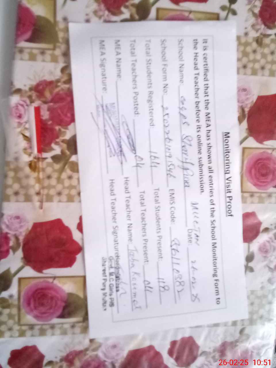 | Certified that this School was Inspected by the Undersigned MEA/DMO Today and the Information Stated Above is as Per Record. | |||||