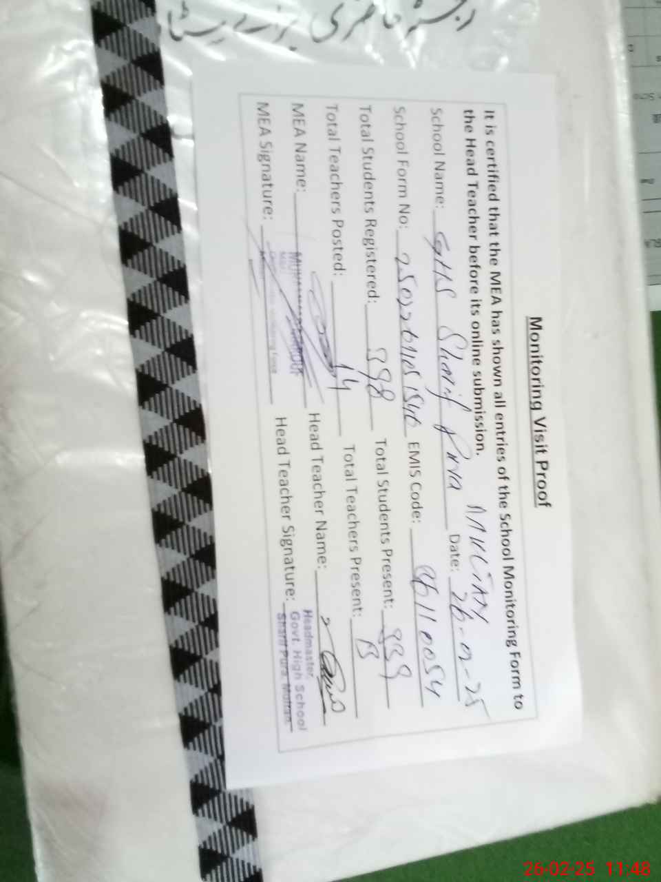| Certified that this School was Inspected by the Undersigned MEA/DMO Today and the Information Stated Above is as Per Record. | |||||