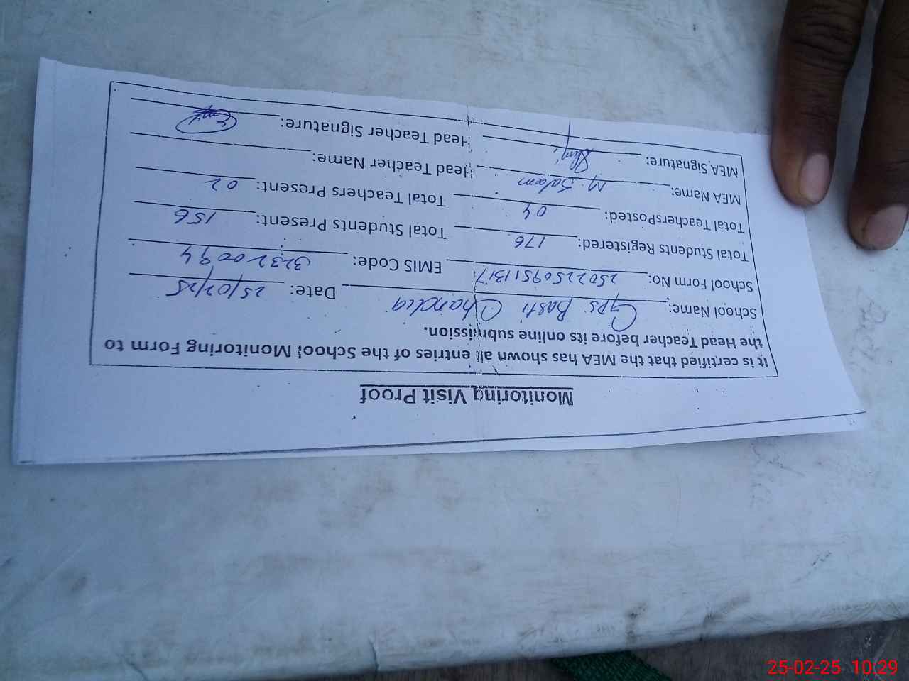 | Certified that this School was Inspected by the Undersigned MEA/DMO Today and the Information Stated Above is as Per Record. | |||||