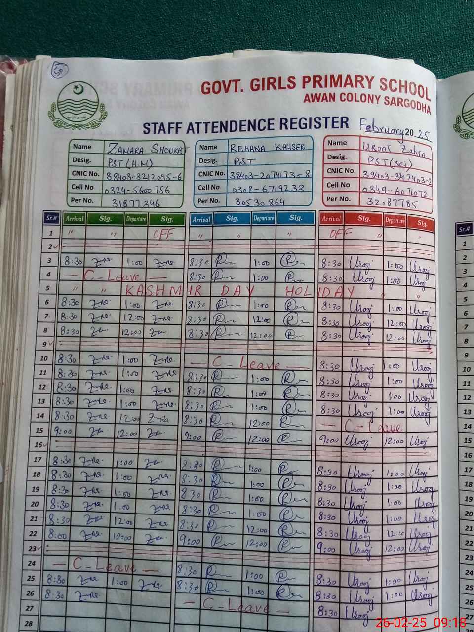 | District: SARGODHA | Tehsil: SARGODHA | Markaz: SARGODHA SADAR - FEMALE | Level: Primary | |