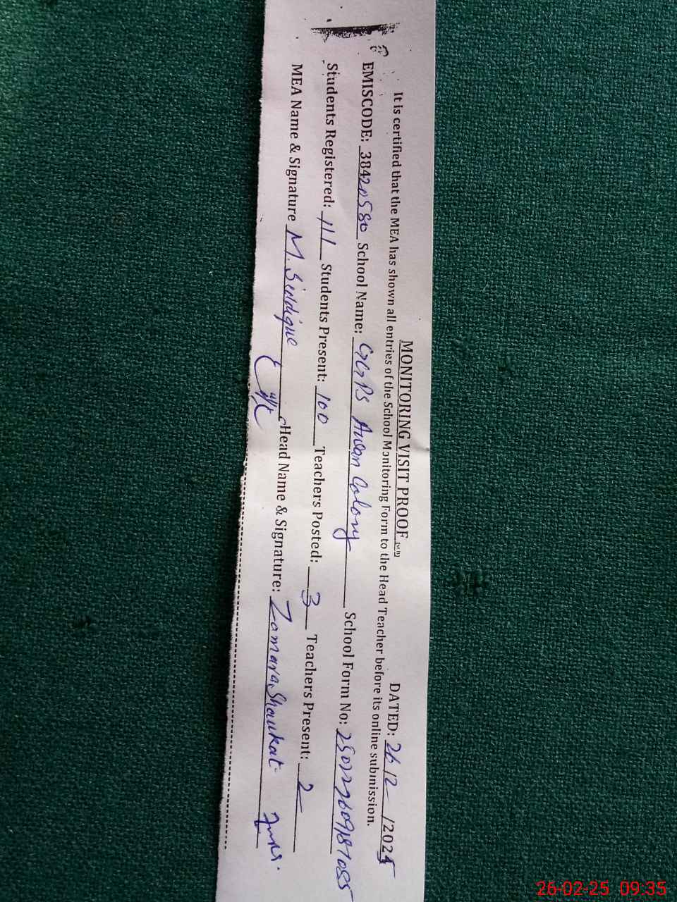 | Certified that this School was Inspected by the Undersigned MEA/DMO Today and the Information Stated Above is as Per Record. | |||||