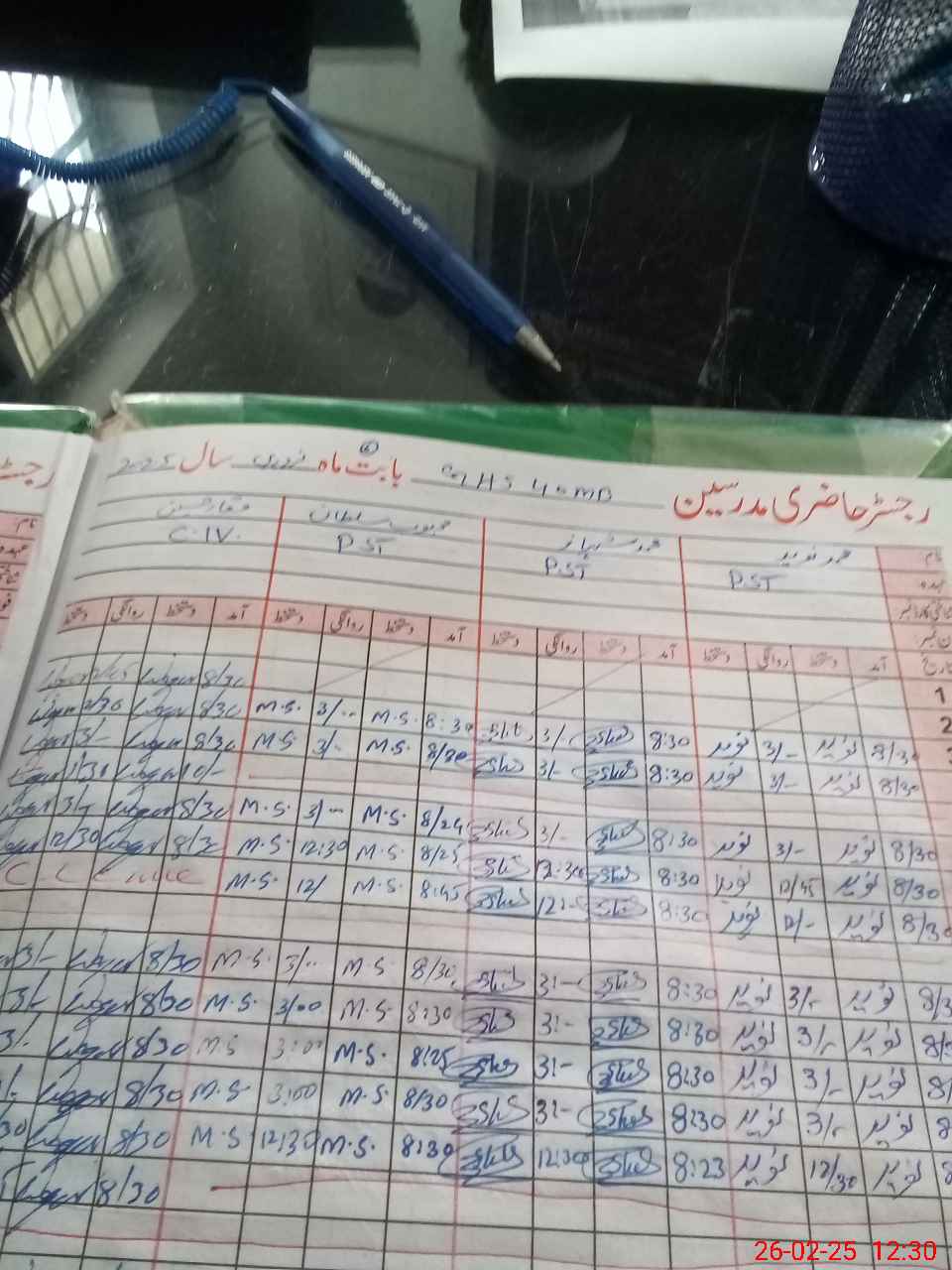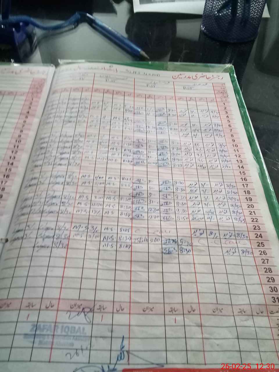 | CNIC | Full Name | Designation | R/C | Absence During Last Calender Month |