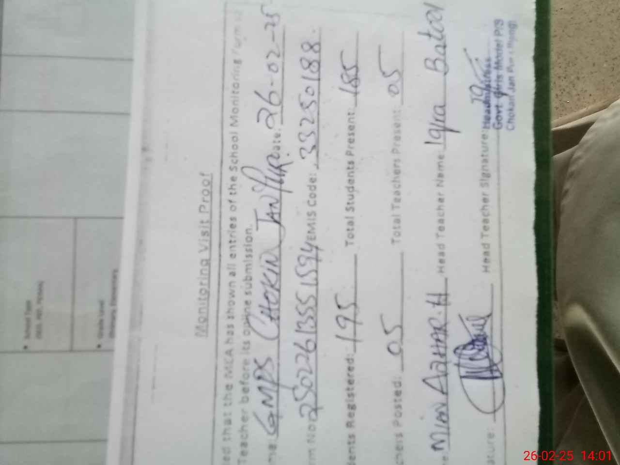 | EMIS Code: 33250188 | Name of School: GMPS CHOKIN JAN PUR | |||