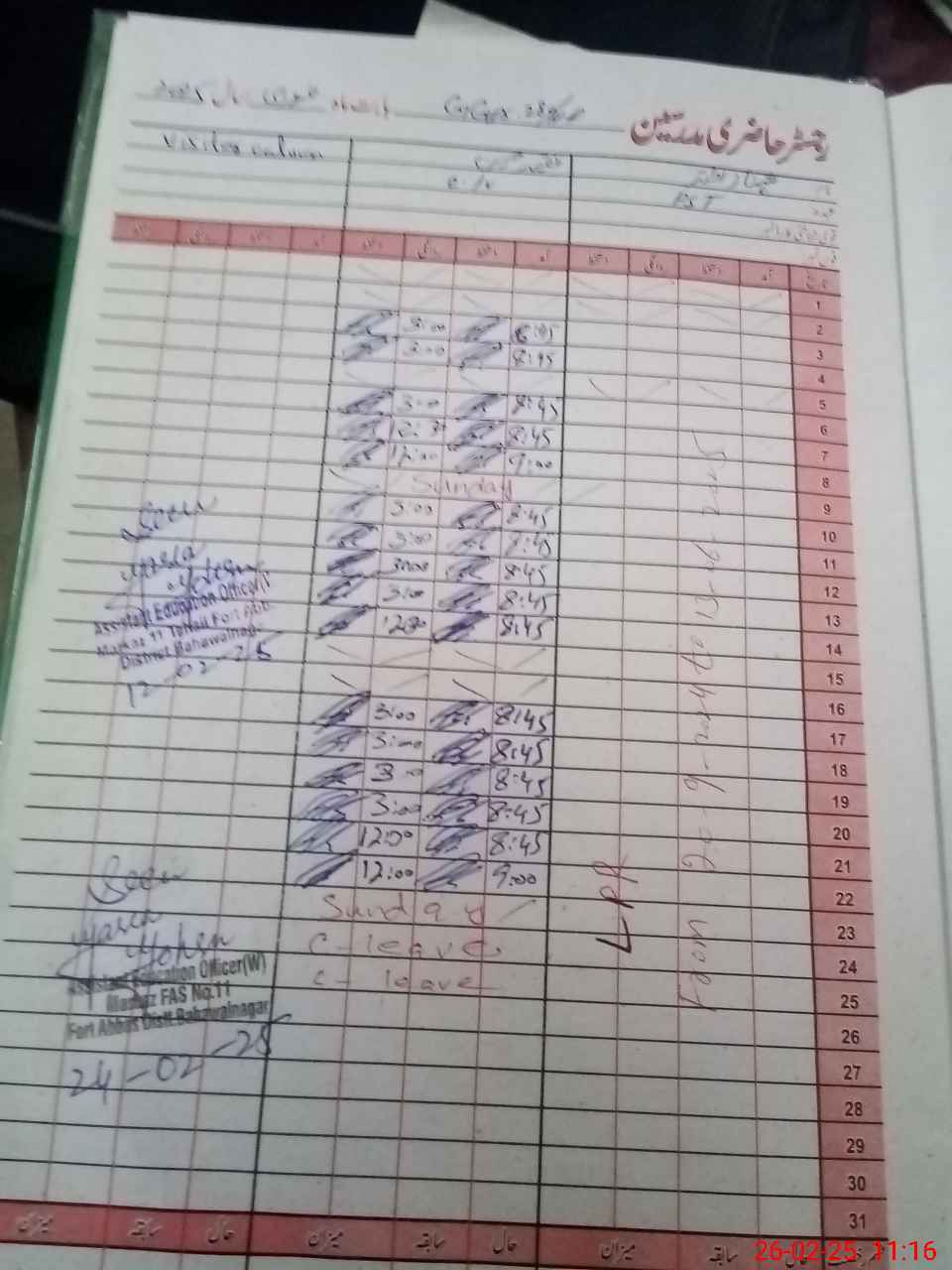 | CNIC | Full Name | Designation | R/C | Absence During Last Calender Month |