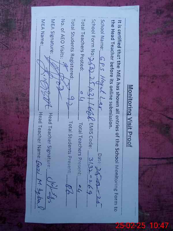 | EMIS Code: 31320269 | Name of School: GPS HAYAT LAR | |||