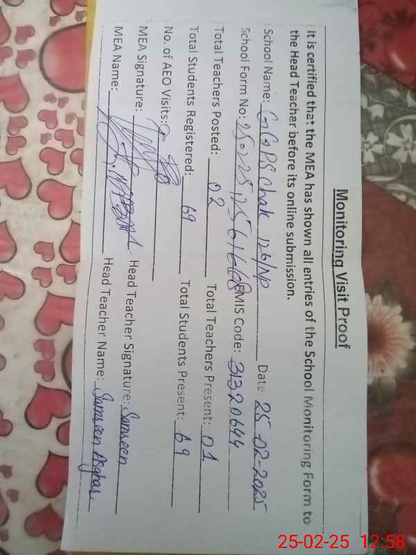 | EMIS Code: 31320644 | Name of School: GGPS CHAK 126/NP | |||