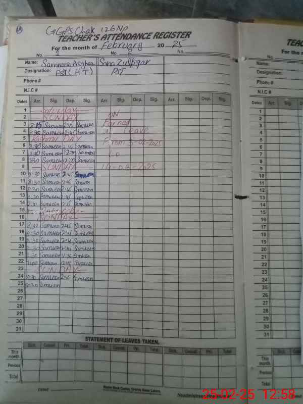 | Name: SA**** AS**** Designation: (School Headmaster's/Headmistress's) PST Phone/Cell Number: 03**** |