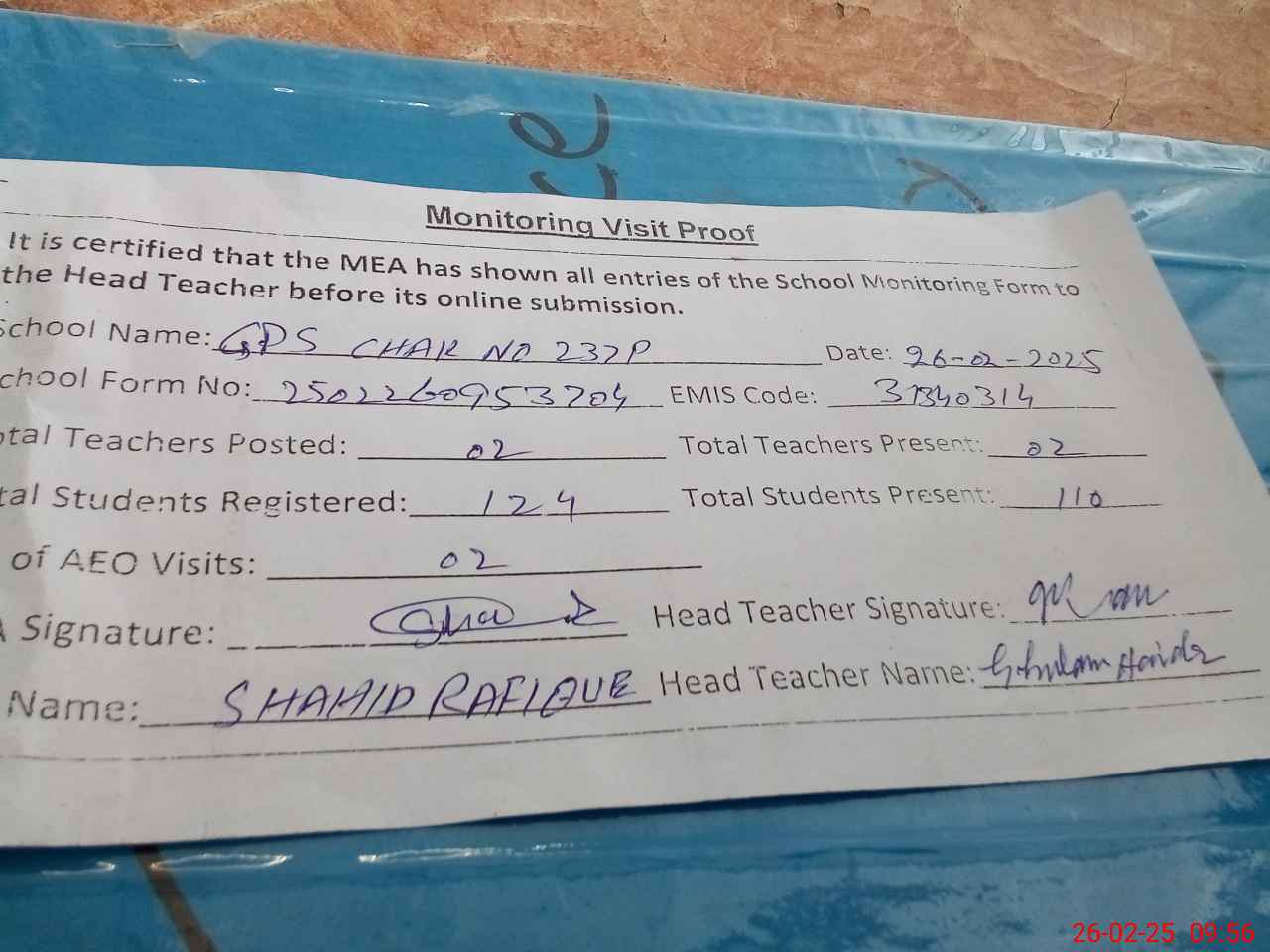 | EMIS Code: 31340314 | Name of School: GPS CHAK NO 237-P | |||