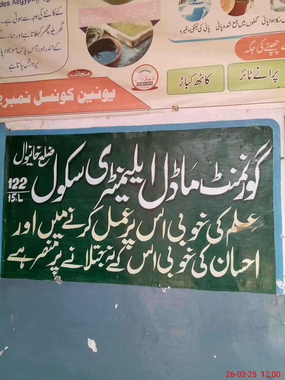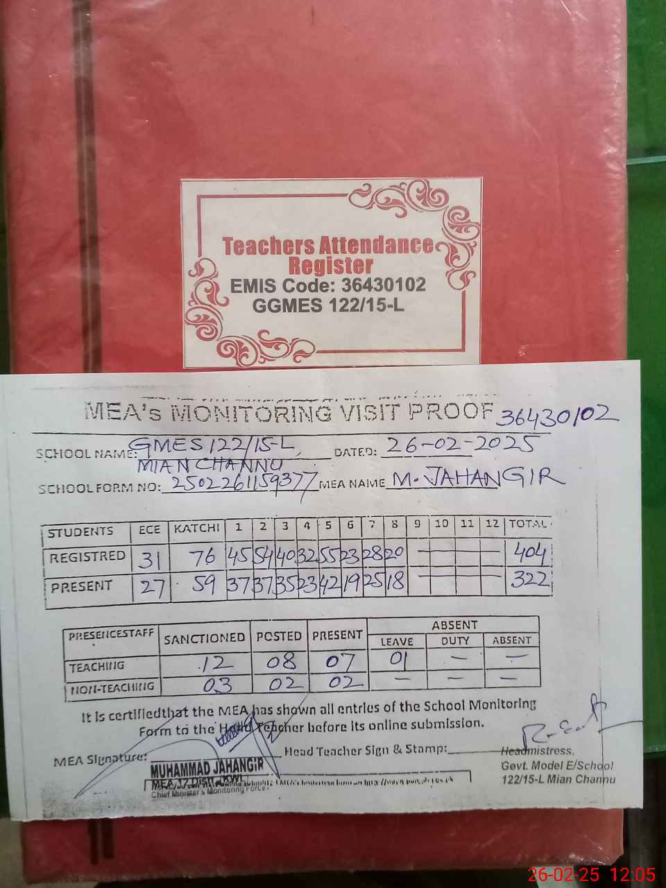 | EMIS Code: 36430102 | Name of School: GMES 122/15-L, MIAN CHANNU | |||