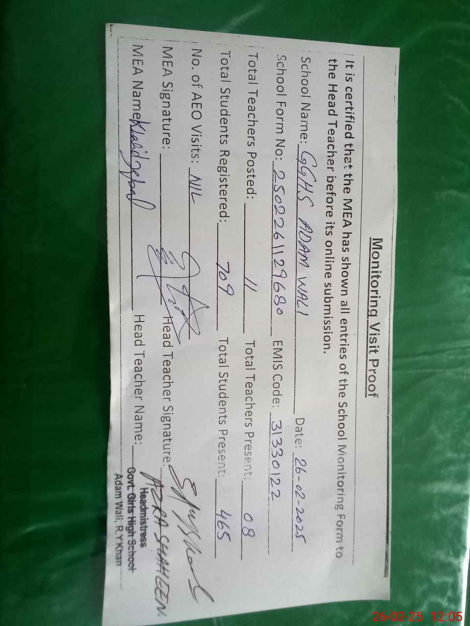| EMIS Code: 31330122 | Name of School: GGHS ADAM WALI | |||