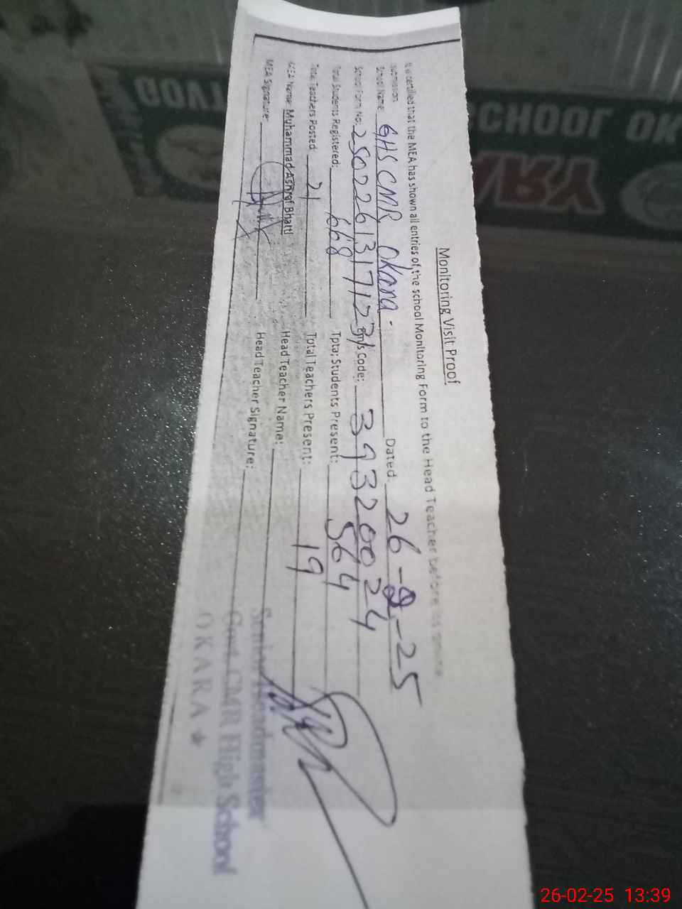 | EMIS Code: 39320024 | Name of School: GHS CMR OKARA | |||