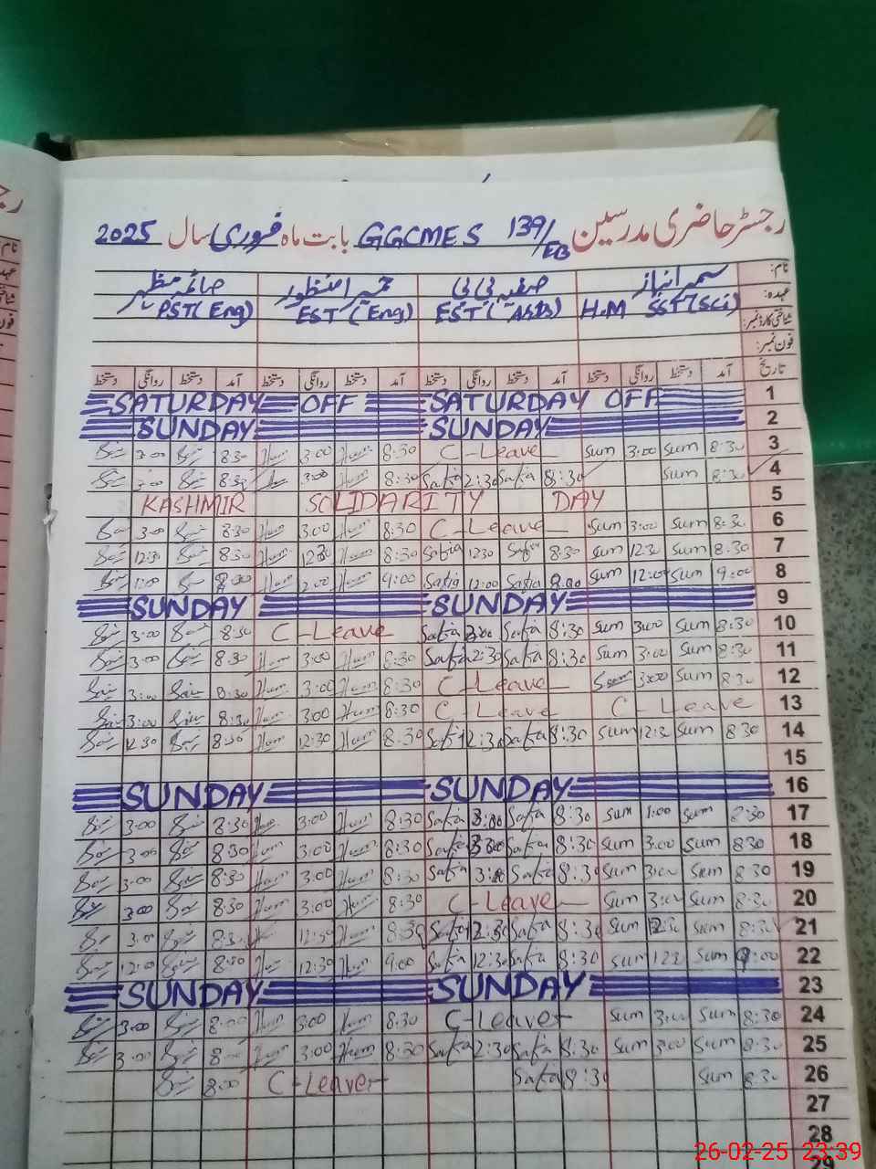 | CNIC | Full Name | Designation | R/C | Absence During Last Calender Month |