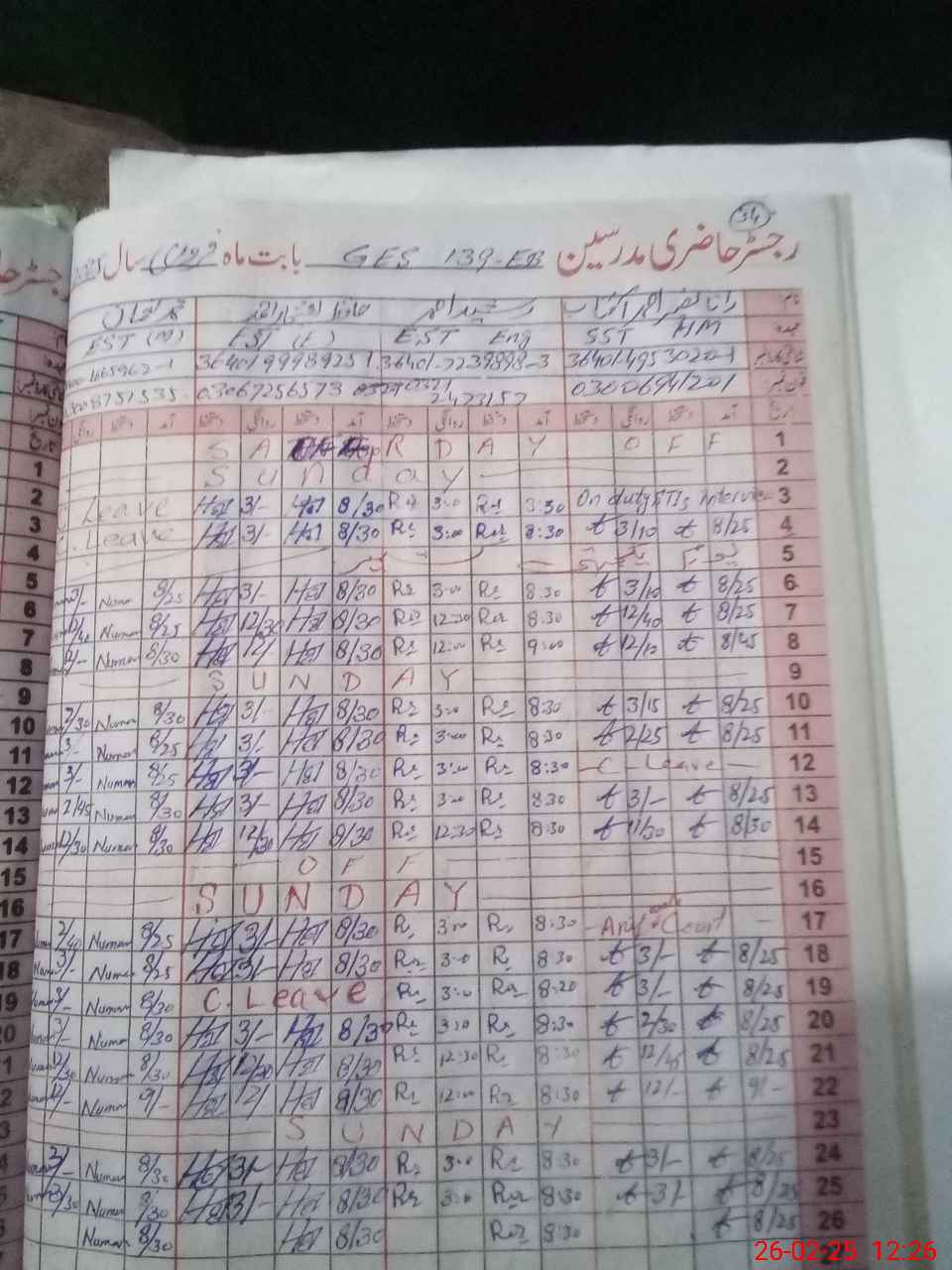 | Name: RA**** NA**** AH**** AF**** Designation: (School Headmaster's/Headmistress's) SST (SCIENCE) Phone/Cell Number: 03**** |
