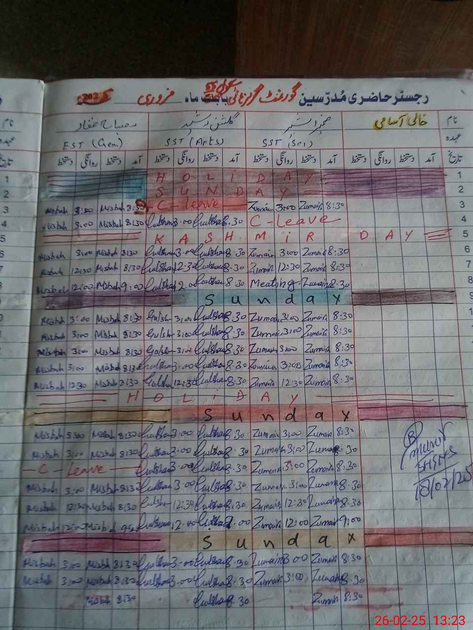 | Name: ZU**** BA**** Designation: (School Headmaster's/Headmistress's) S.S.T.(Sc.) Phone/Cell Number: 03**** |