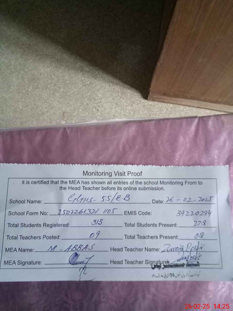 | EMIS Code: 39220294 | Name of School: GGHS 55 EB | |||