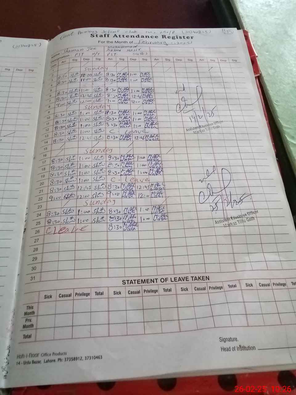 | Name: SH**** JE**** Designation: (School Headmaster's/Headmistress's) PST Phone/Cell Number: 03**** |