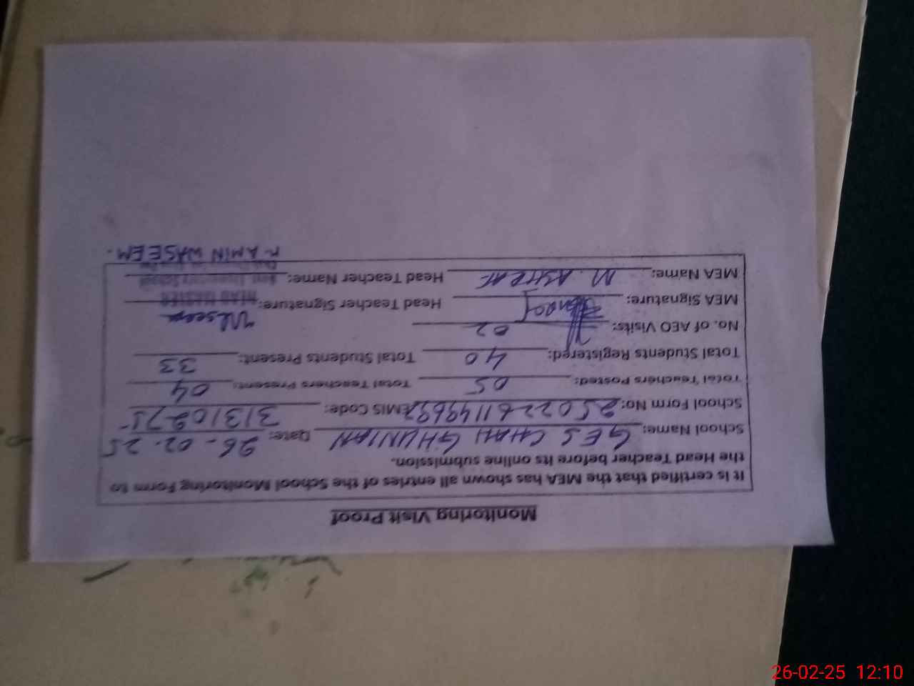 | Certified that this School was Inspected by the Undersigned MEA/DMO Today and the Information Stated Above is as Per Record. | |||||