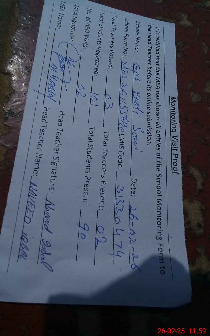 | EMIS Code: 31330474 | Name of School: GPS SONI | |||