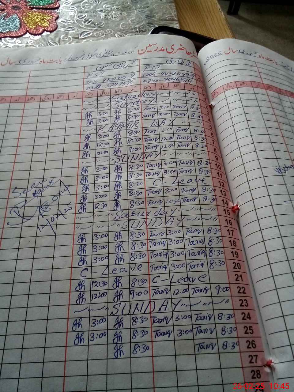 | Leave | Duty | Absent | Maternity | Medical | Ex- Pak |